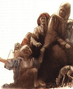 The official Jairus also puts aside his fear to ask Jesus’ help. He dares to approach the man condemned by many in his community on the chance that his daughter might be brought back to him. Do not be afraid, Jesus says when word arrives that the child has died. Just have faith. Do we dare to go against the pressures of society to believe that there is more to healing than science? Do we have the courage to publicly ask help of the one who is so powerful that even the tassel on his cloak transmits this incredible curing gift? Might we be as bold in our belief, or are we more fearful than fearless?